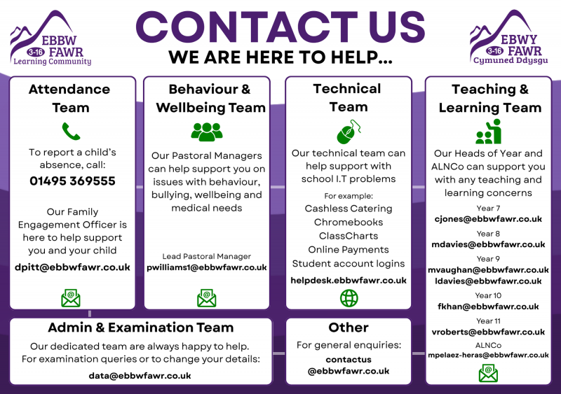 We’ve provided email addresses for key staff in our Secondary Phase who will be able to assist you directly: