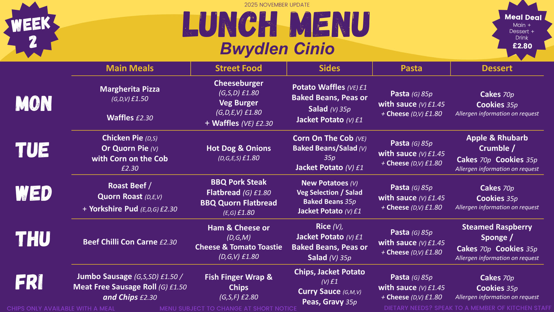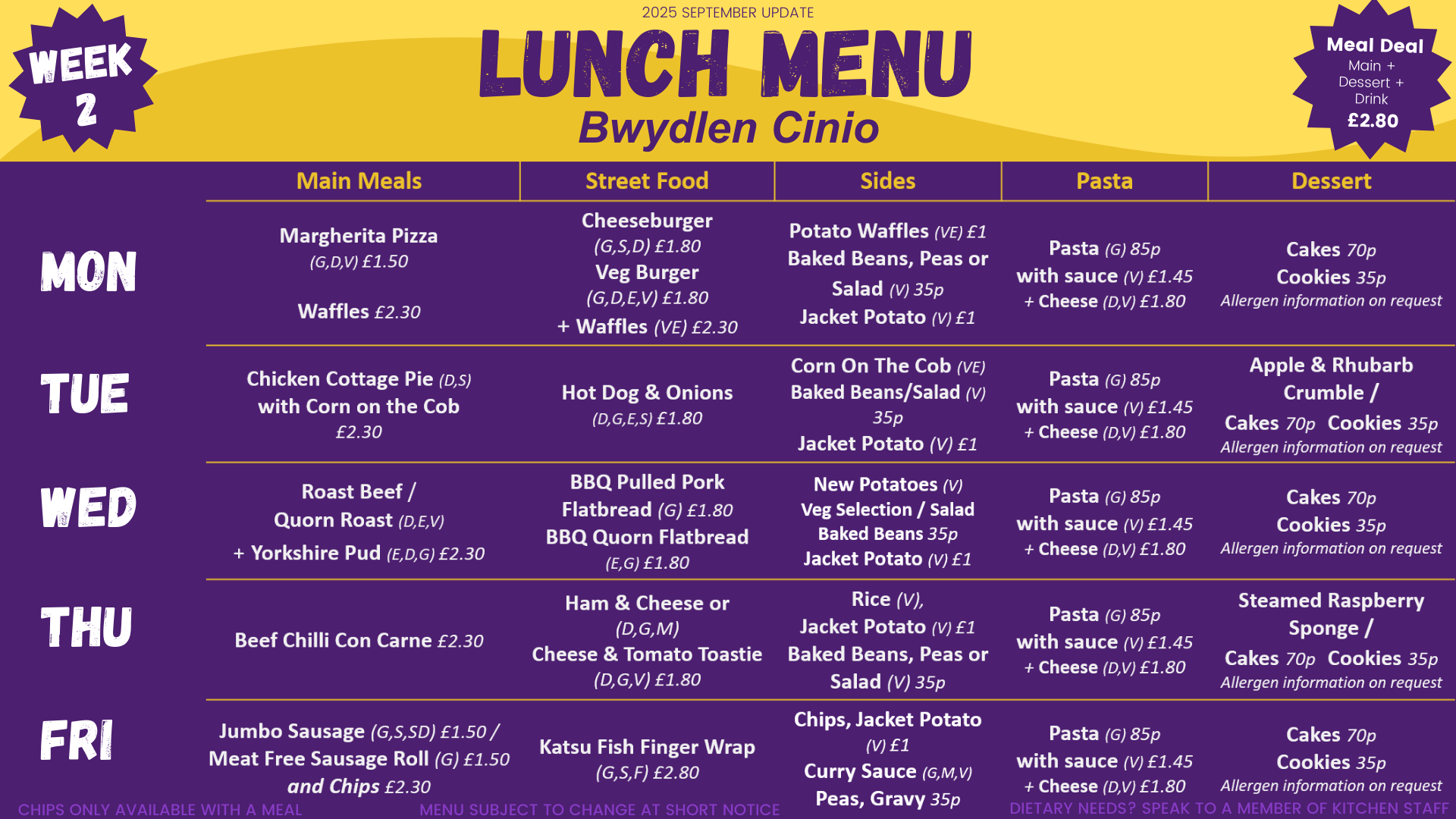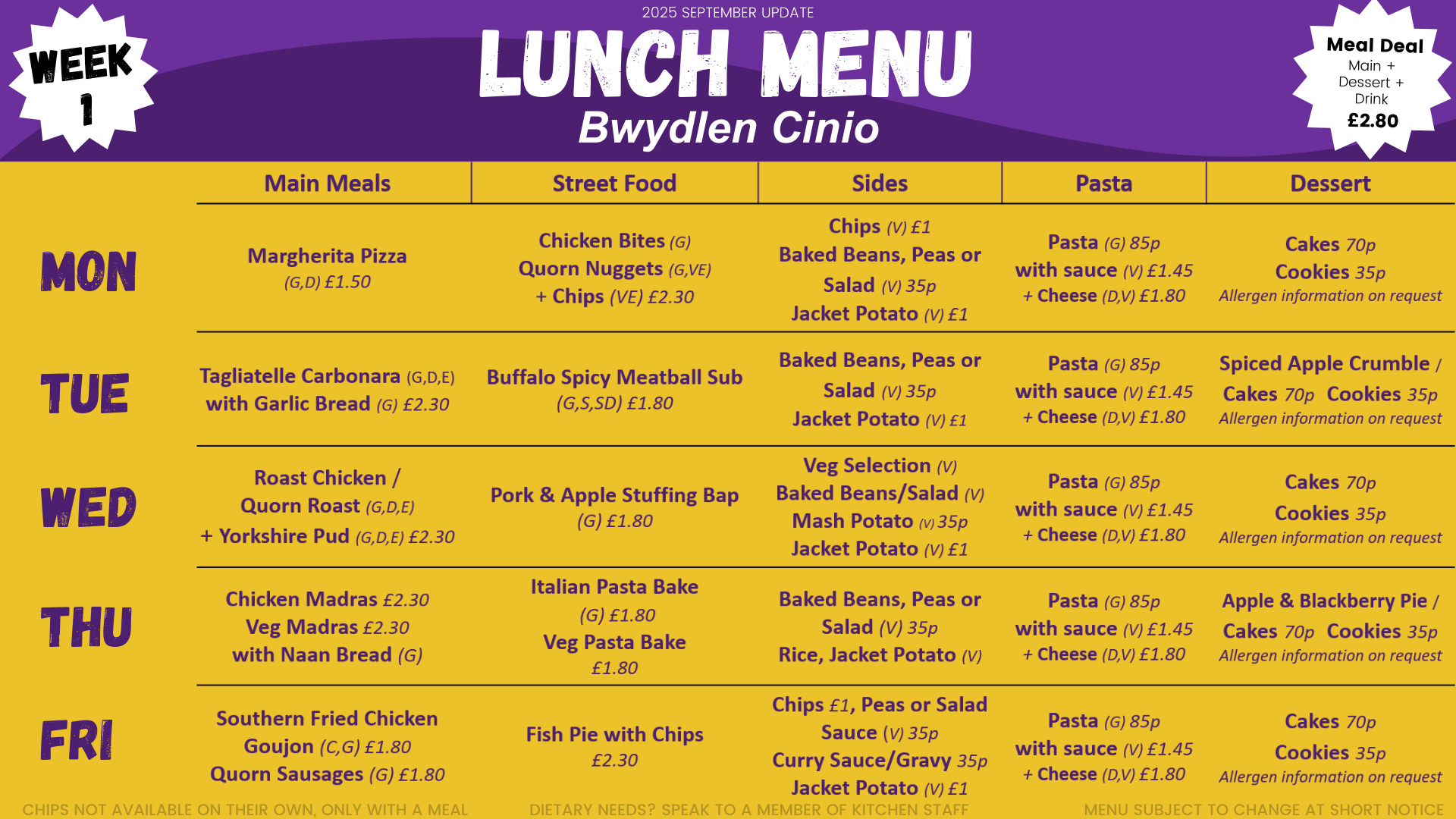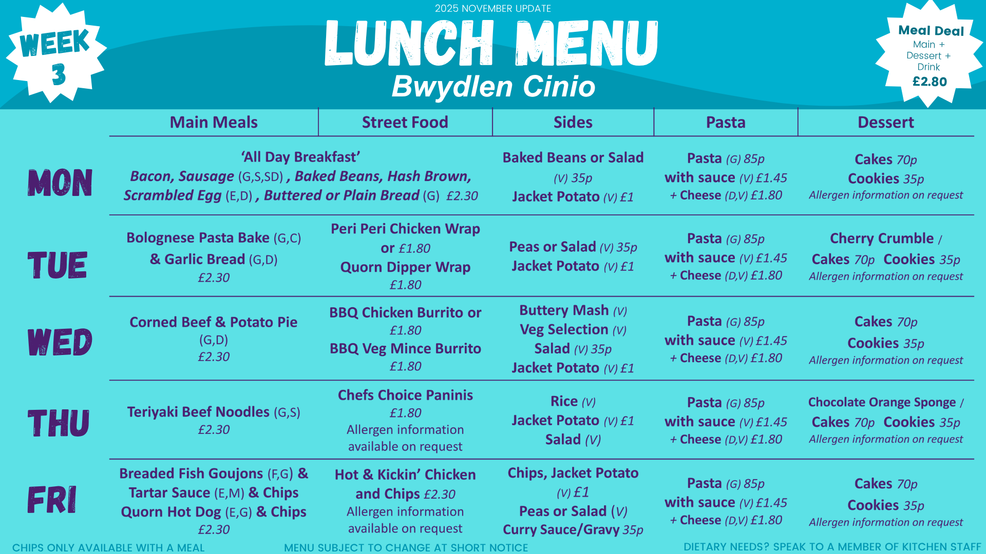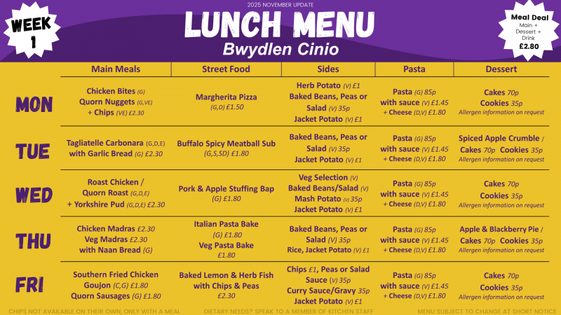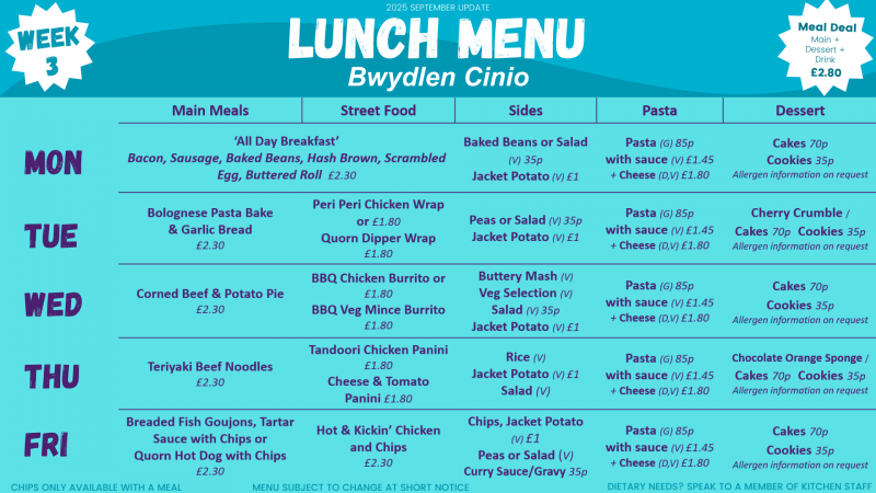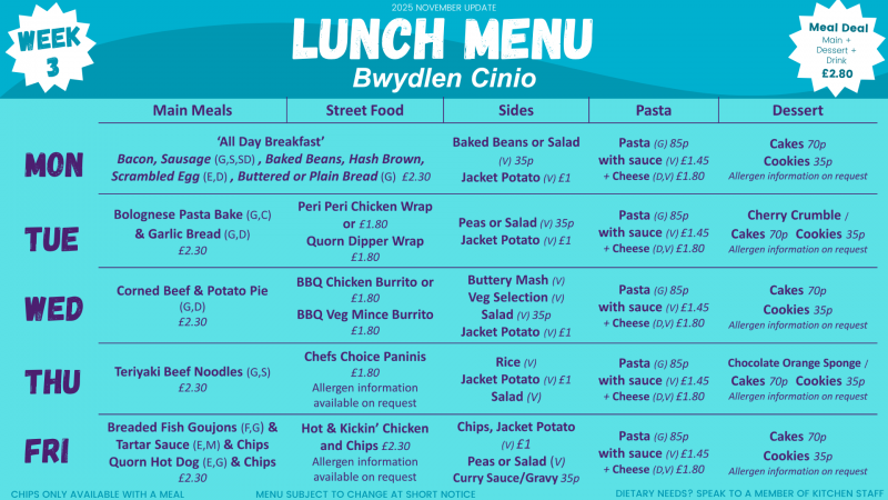 We currently run a 3 weekly menu in school, which was updated and refreshed in September 2025. They can be subject to change at short notice: